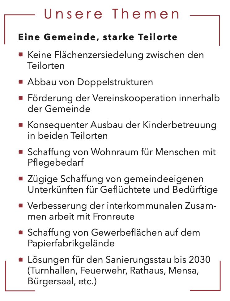 Das ist das Besondere an wolpertsWENDE und daher rührt auch der Name - wolpertsWENDE, kein Zerfransen mehr in unzähligem Klein-Klein, sondern eine Fokussierung auf die Themen unserer kommunalen Zukunft.